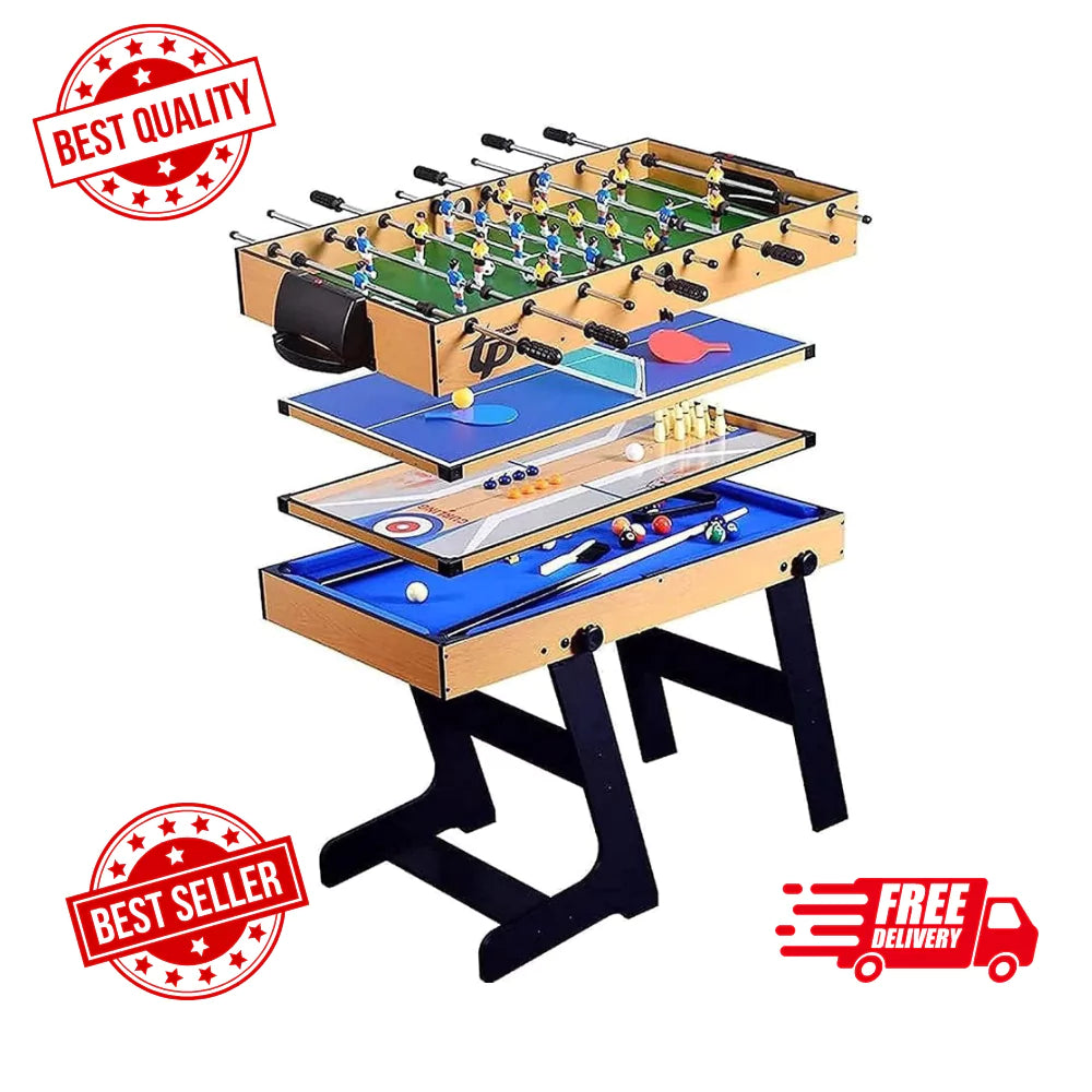 - Soccer Table (Compact Size): Challenge your friends to a fast-paced soccer match. Arrives unassembled for easy storage.