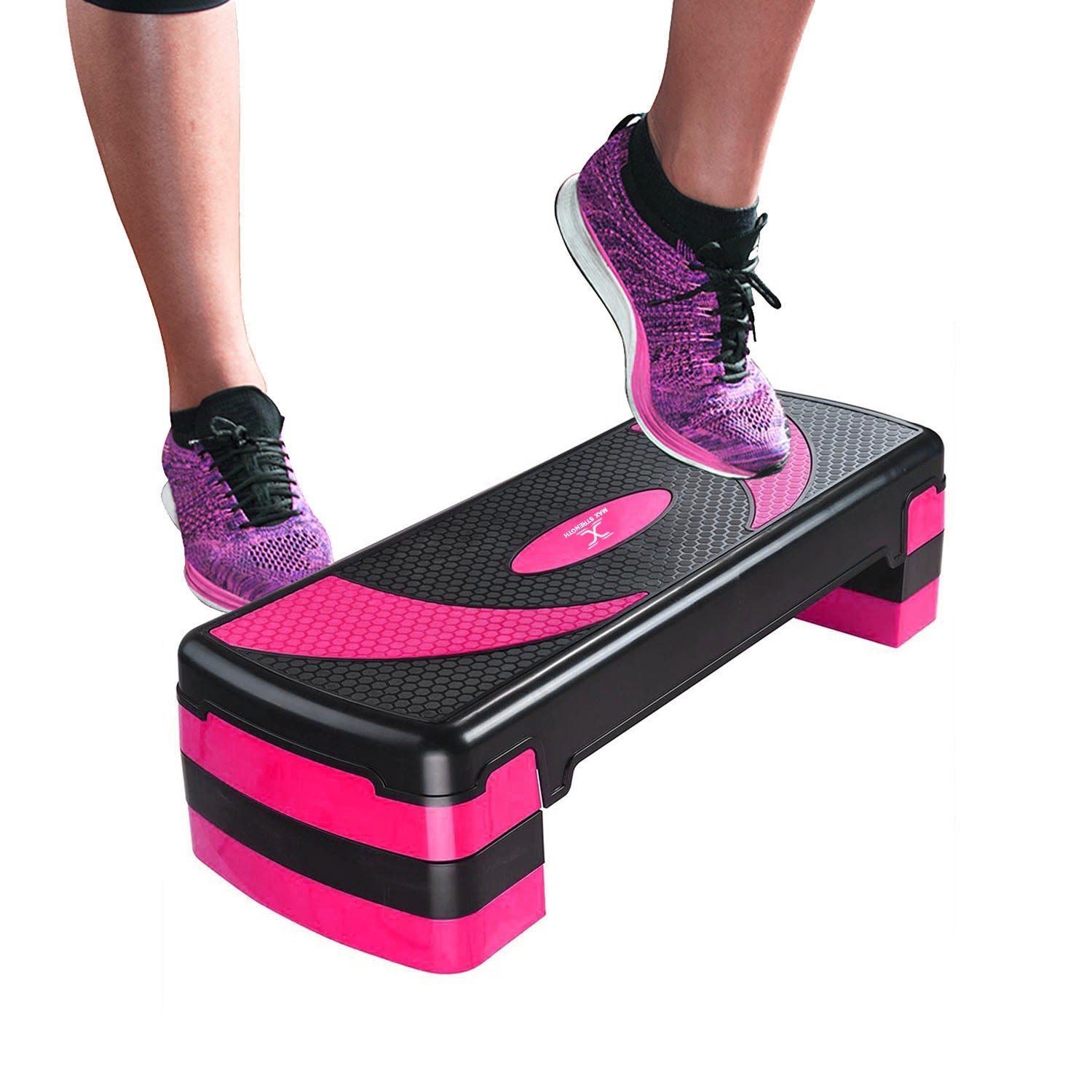 X MAXSTRENGTH Aerobic Stepper 5 Level Step Platform Cardio Training Yoga Workout Stepper (Pink/Black)